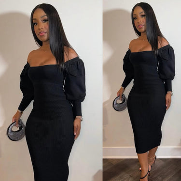 Long sleeves square neckline textures midi dress. 52% rayon, 48% nylon. Stretchy— model seen wearing size small